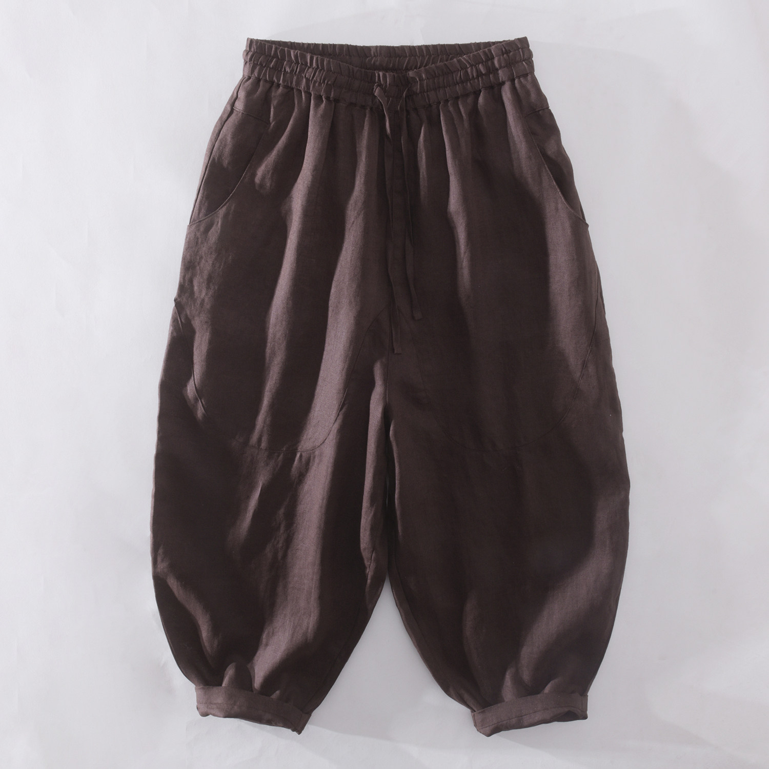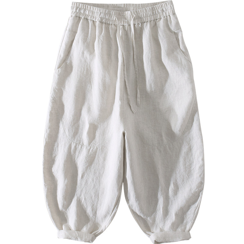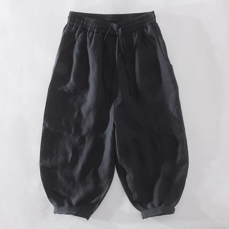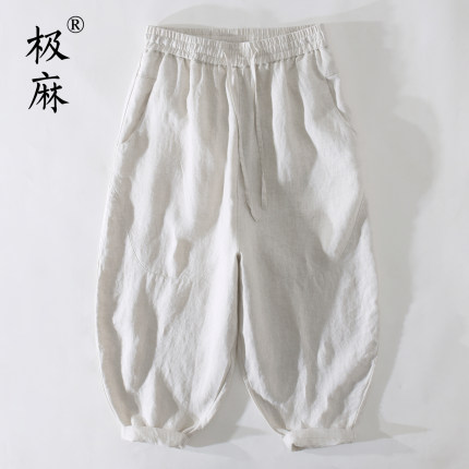 极麻松紧腰个性薄款阔腿亚麻灯笼裤男士休闲抽绳小脚宽松棉麻长裤