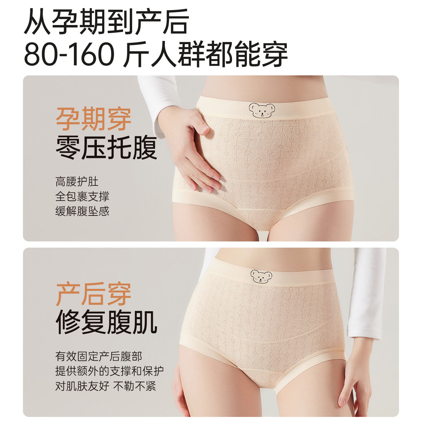 猫人女士孕期高腰托腹平角内裤