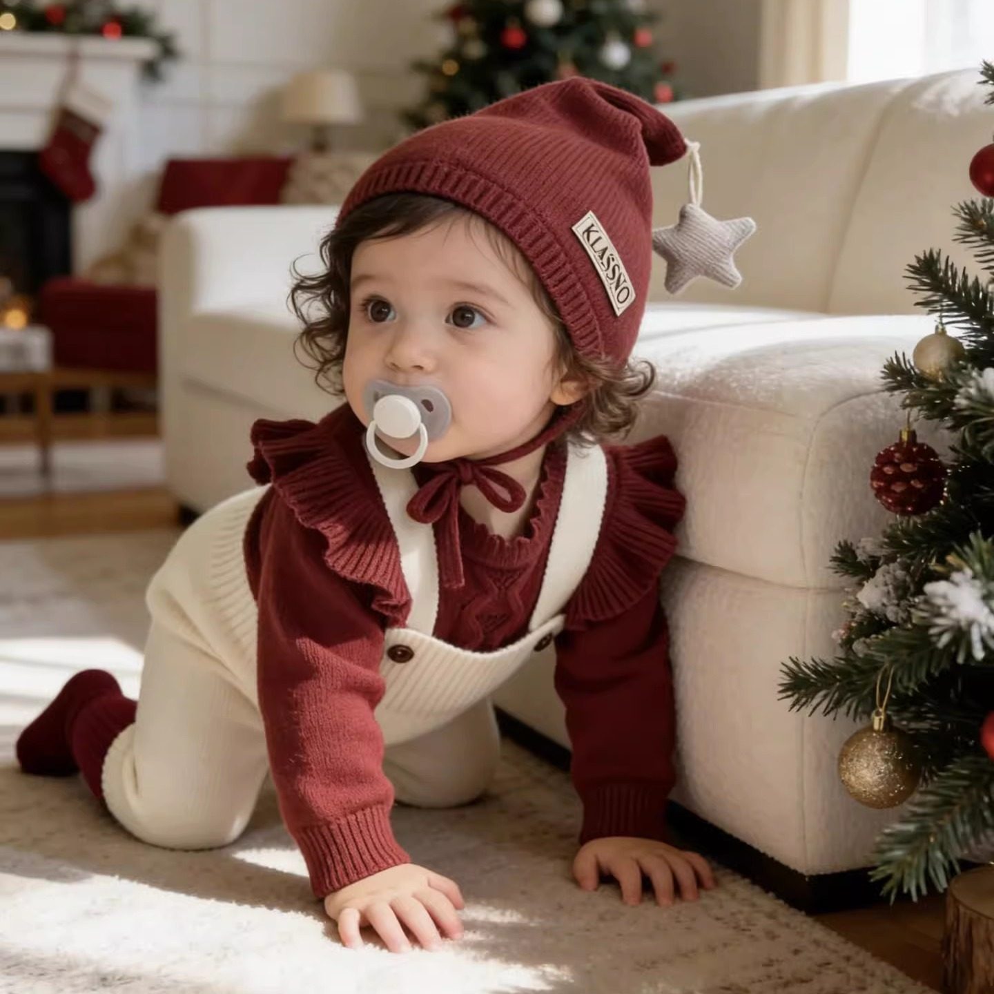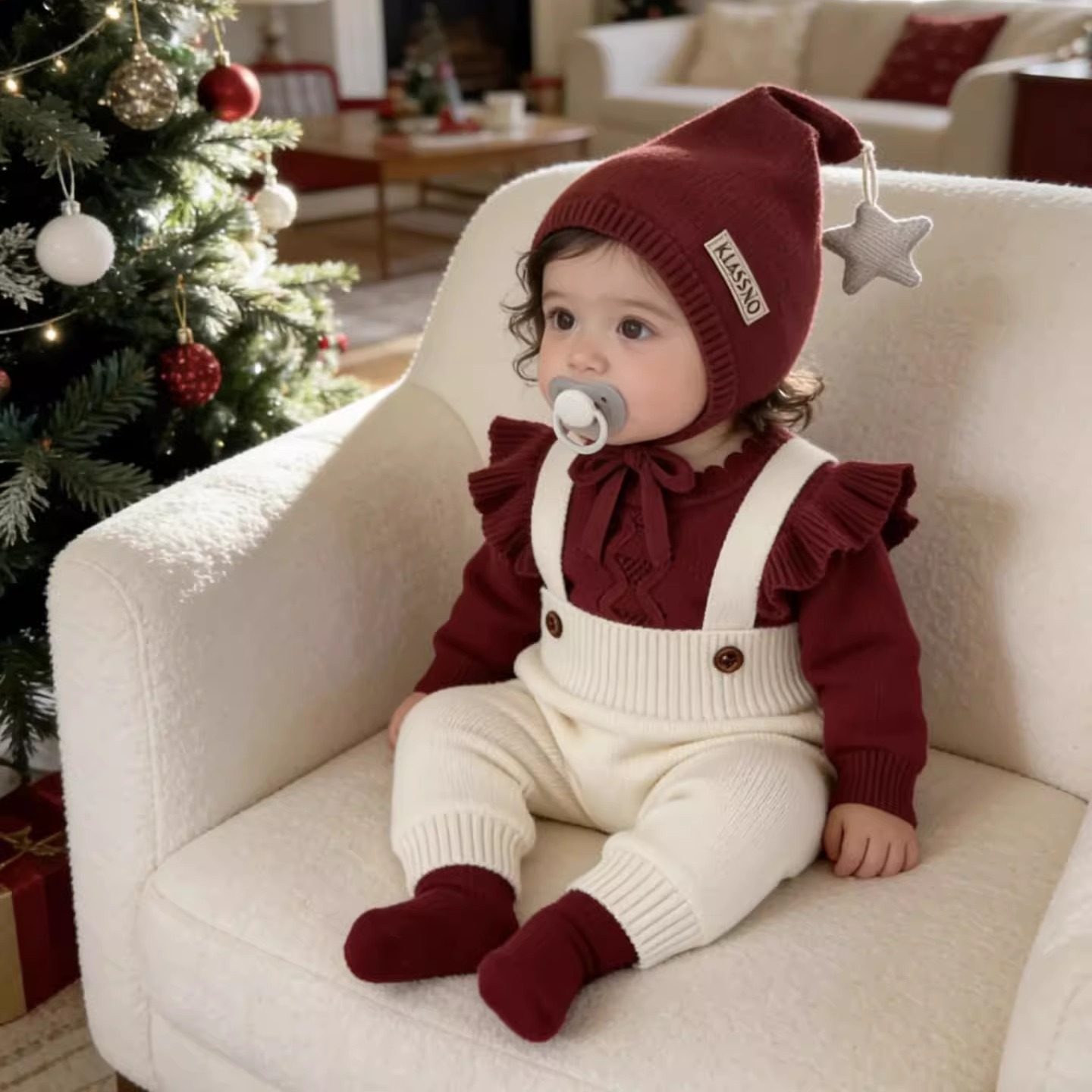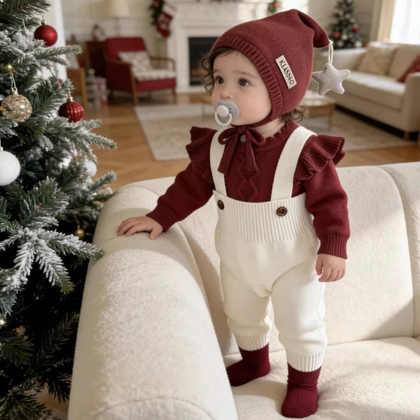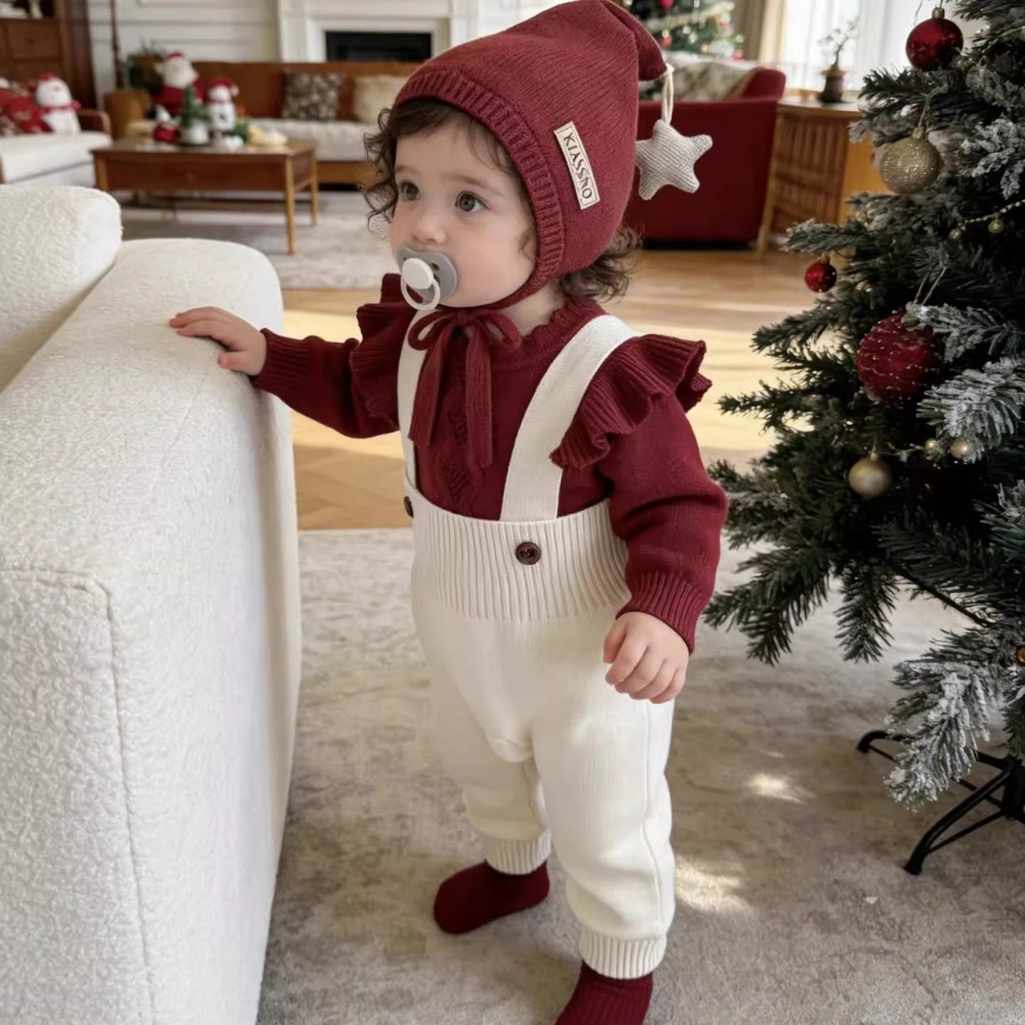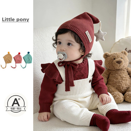 女宝宝可爱针织包屁哈衣连体裤两件套韩版百搭针织爬服背带裤套装