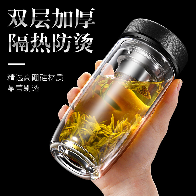茶杯玻璃杯男士双层水杯鹅蛋防爆隔热杯子大容量加厚车载高档便携