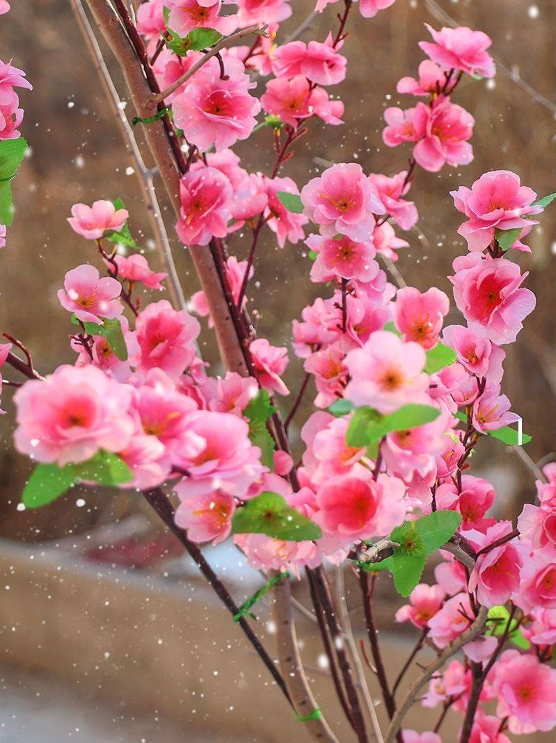 仿真桃花枝客厅假腊梅花单支塑料花干燥花摆件室内装饰树落地樱花