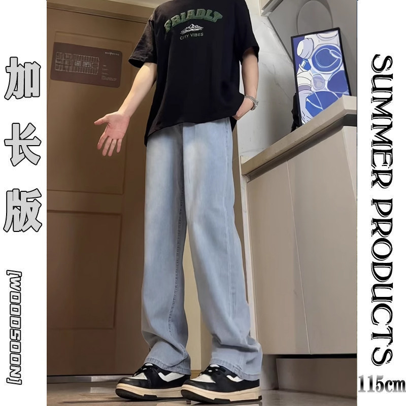 青少年190cm加长男裤秋季长裤高个子牛仔裤男115cm港风直筒阔腿裤
