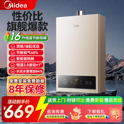 政府补贴美的燃气热水器14L16L天然气家用恒温速热强排节能HWAPro