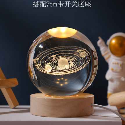 发光水晶球桌面摆件创意太阳系月球玻璃球装饰小夜灯新年生日礼物