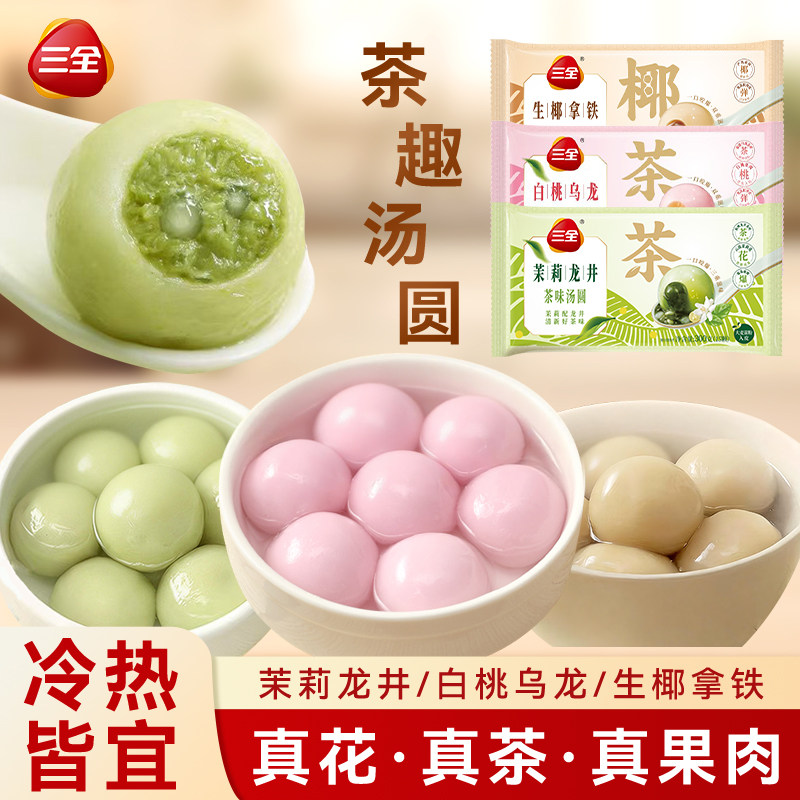 三全茉莉龙井茶汤圆元宵鲜奶抹茶馅料早餐点心速冻半成品大丸子