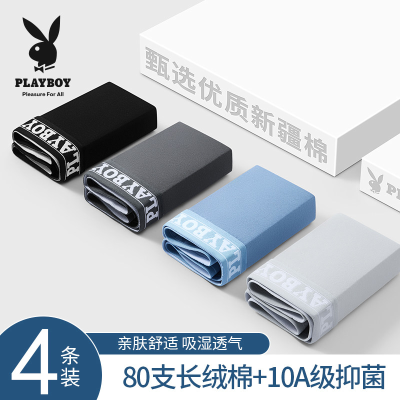 花花公子男士内裤纯棉2026新款四角短裤大码男款透气抗菌平角裤衩