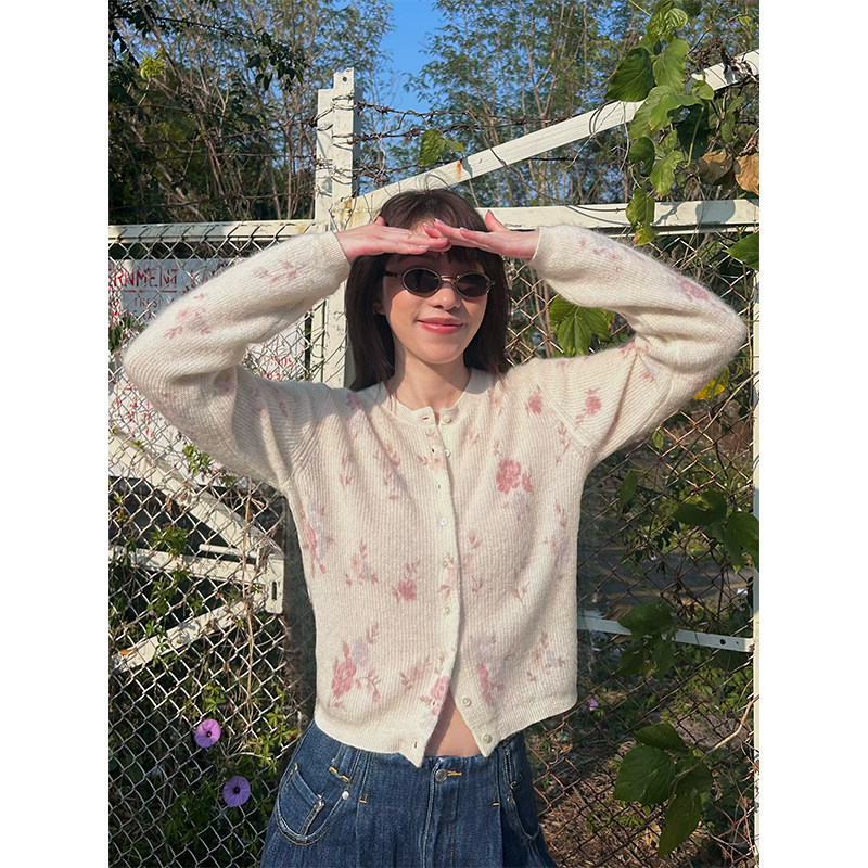 Even Vintage | 羊驼羊毛混纺 粉紫调晕染印花简约温柔风针织开衫
