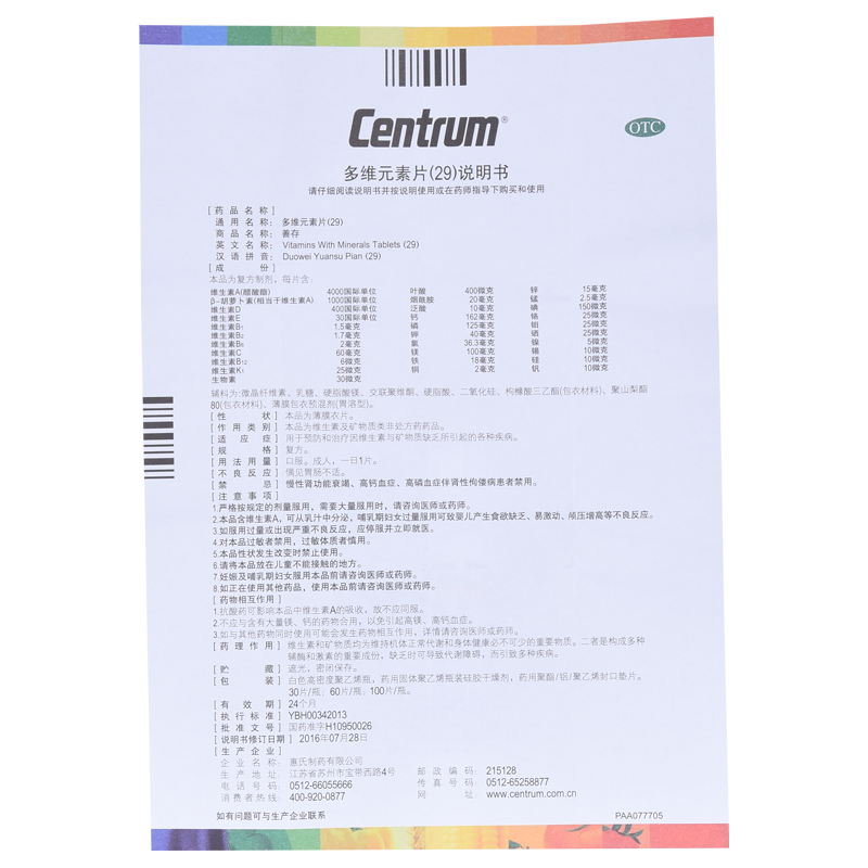 善存多维元素片29复合维生素30/60/100官方旗舰店男女士V唯生素银