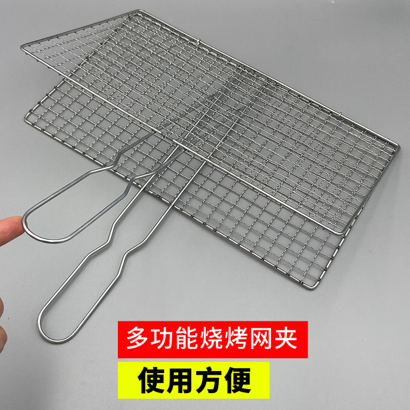 加粗方形不锈钢烤鱼夹子家用烧烤网商用网格户外用品烧烤用具夹板