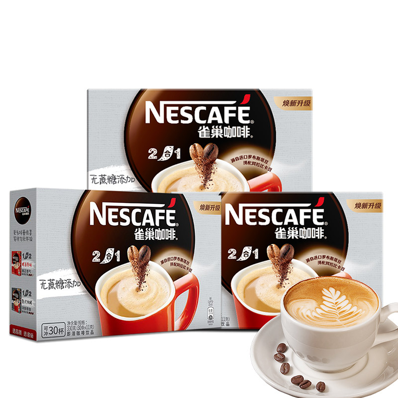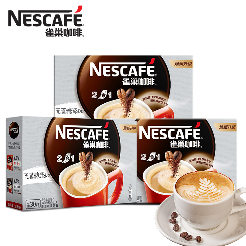 Nestle雀巢咖啡二合一无蔗糖添加速溶咖啡30条*3盒90条官方正品