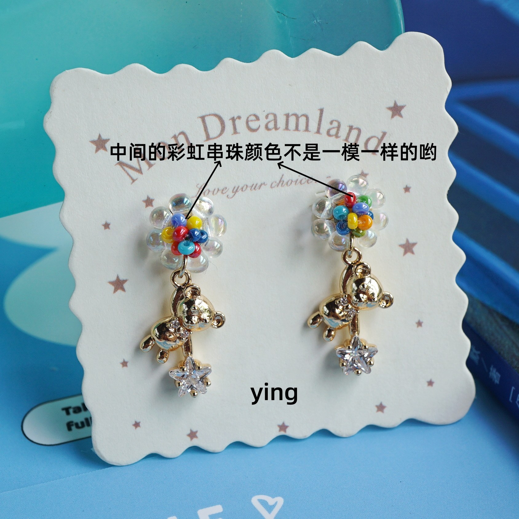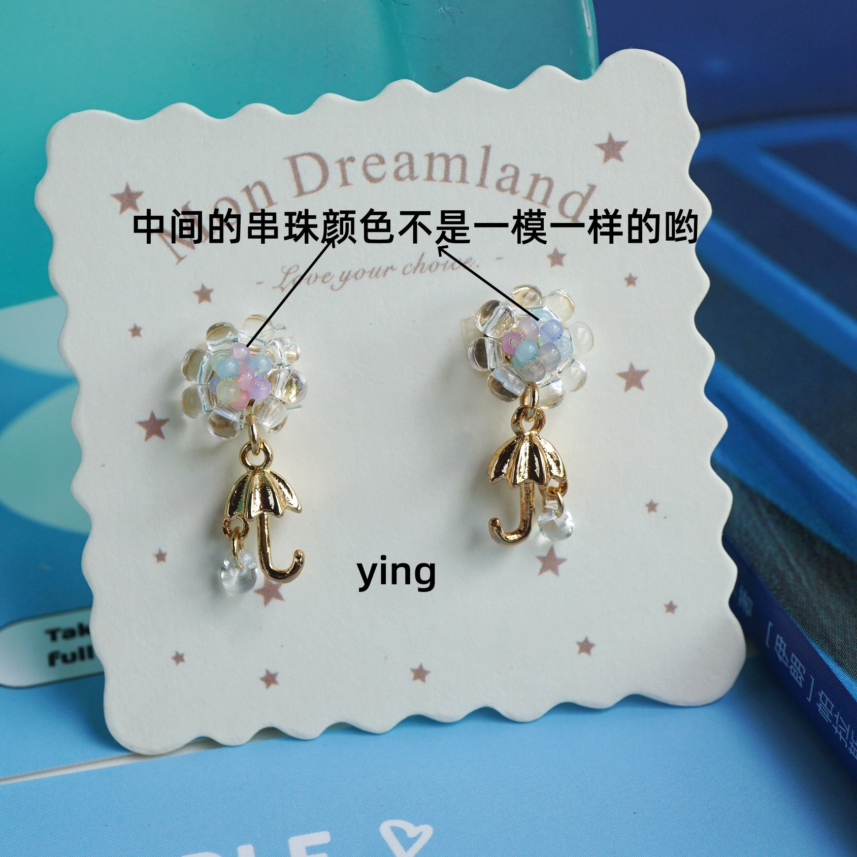 Ying.原创手作可爱趣味小熊雨伞女士纯银耳钉耳饰耳夹