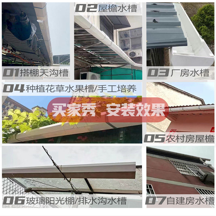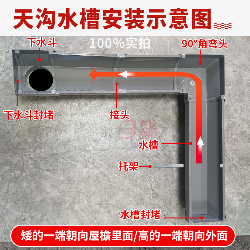 PVC天沟水槽屋檐沟管160排水落水槽雨水槽房檐阳台绿植排水槽灰色