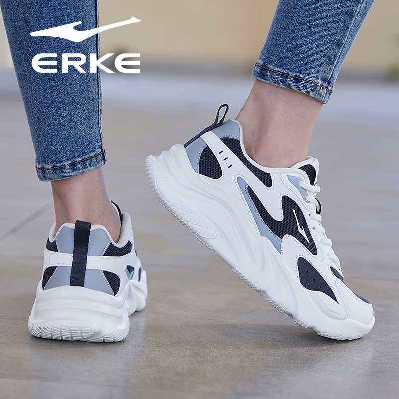 鸿星尔克女鞋2025秋季新款妈妈黑白网面透气厚底运动休闲跑步鞋子