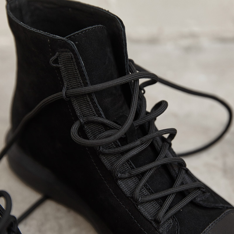 欧洲站休闲鞋原创设计2022春季新款黑色平底绑带式短靴女式马丁靴