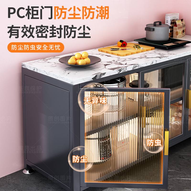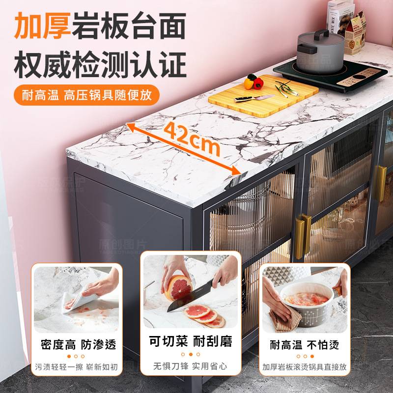 岩板厨房置物架落地多层操作台靠墙一体橱柜多功能餐边柜收纳柜子