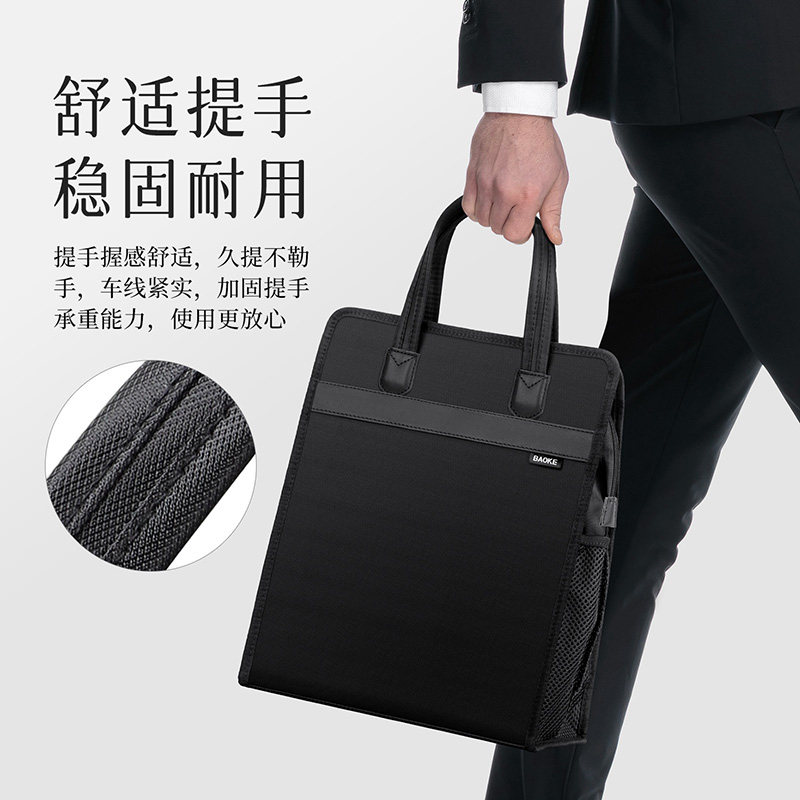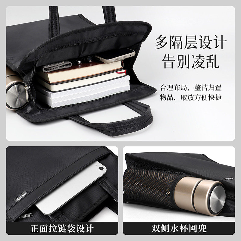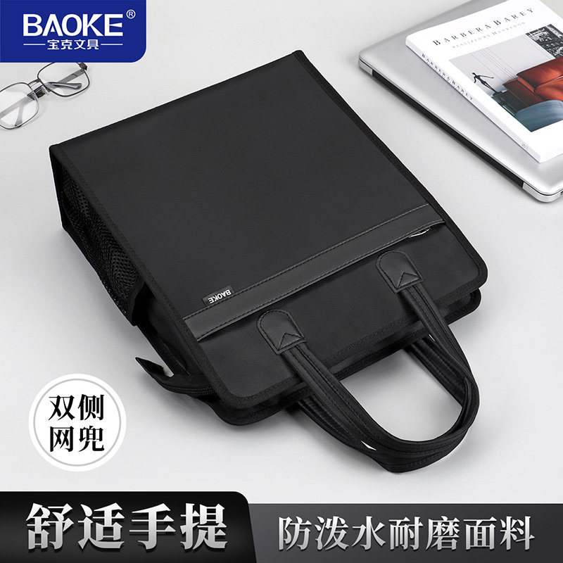 宝克公文包帆布手提袋文件袋手提拉链袋文件包防水手提包男士多层牛津布公文袋收纳商务办公会议培训班资料袋