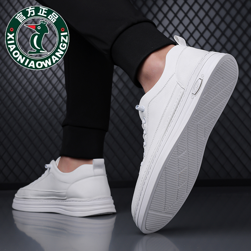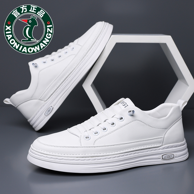 100%全牛皮欧伦啄木鸟秋季新款男士真皮运动休闲板鞋透气小白鞋男