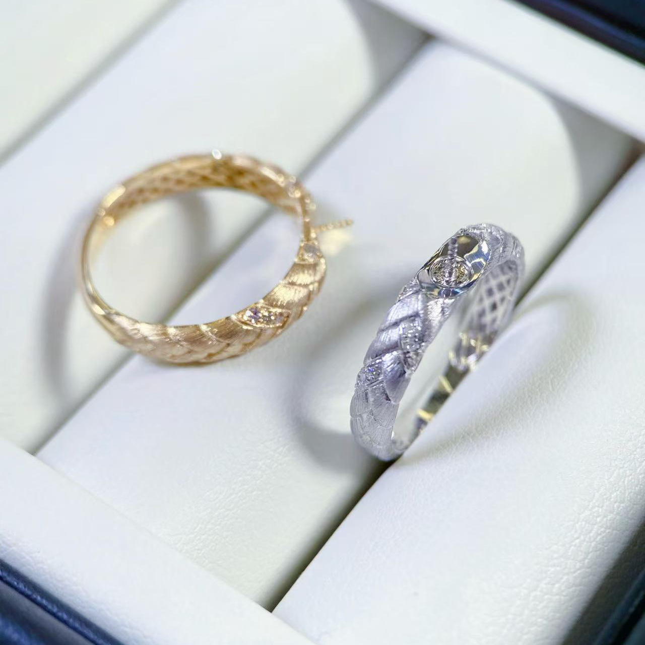 18k金钻石8-11mm淡水珍珠戒指配件拉丝麻花设计圆形裸珠diy戒托