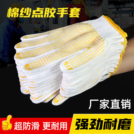 手套劳保耐磨防滑点胶纯棉纱线加厚建筑工地男搬货拔河工作干活用