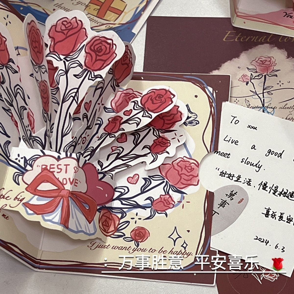 立体玫瑰贺卡ins高颜值复古3D