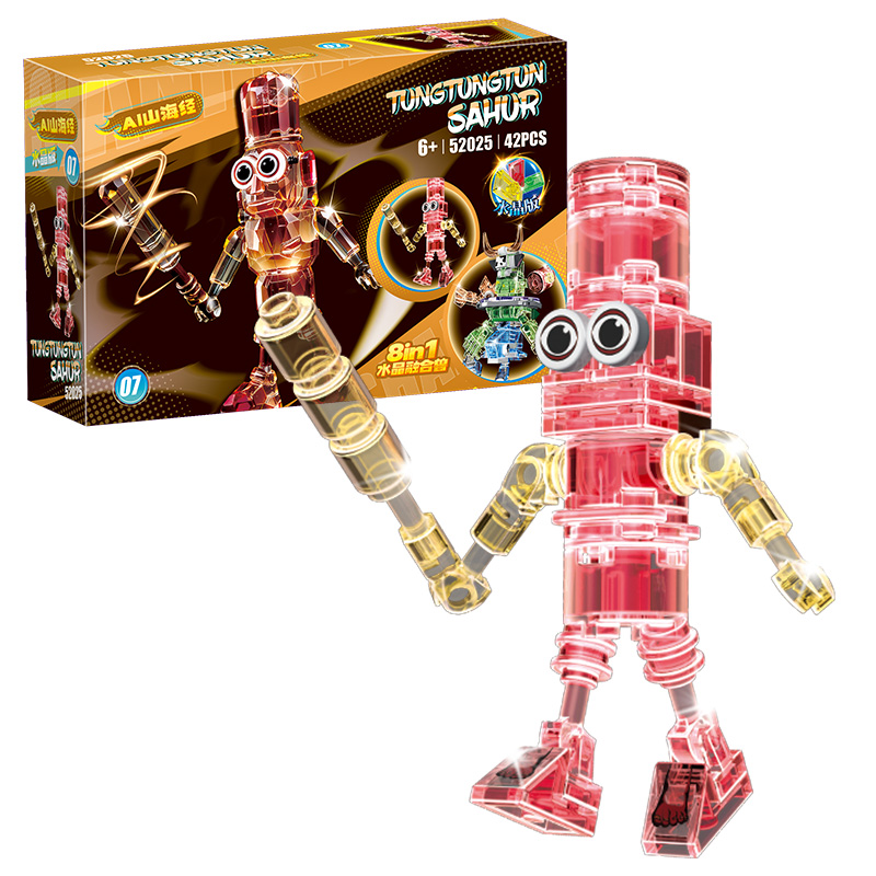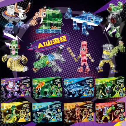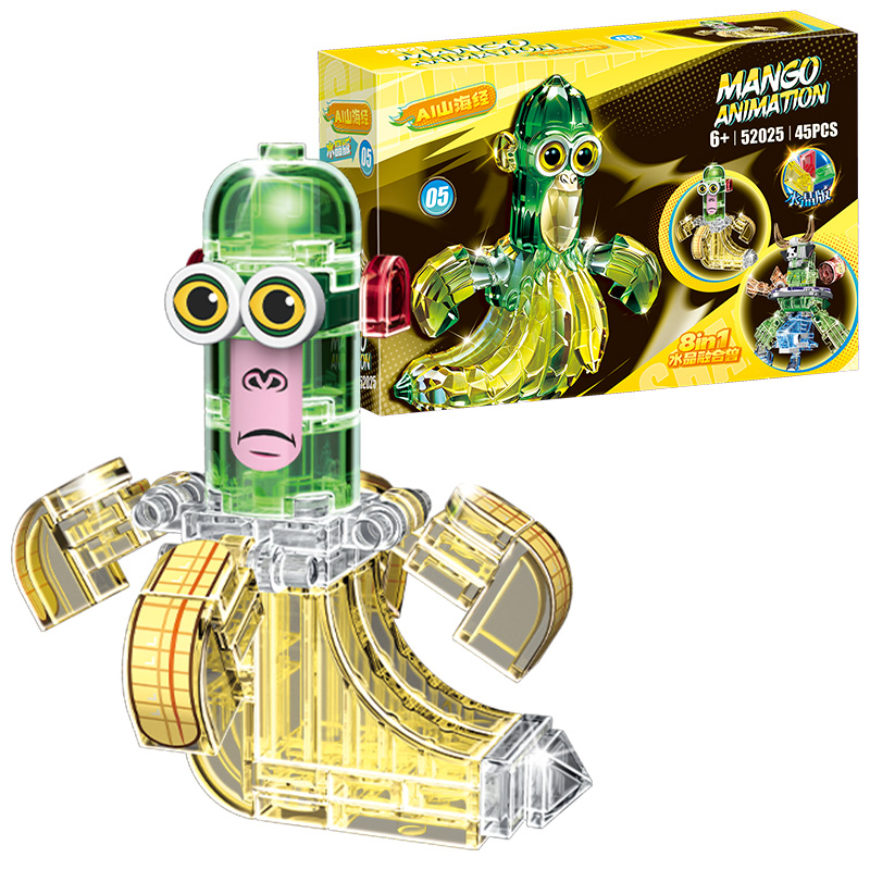 水晶透明小颗粒积木益智AI山海经异兽香蕉猴奶牛木棍人合体融合兽