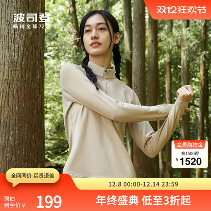 波司登奥莱女Polo衫户外轻量防护透气长袖立领双面磨毛保暖衣