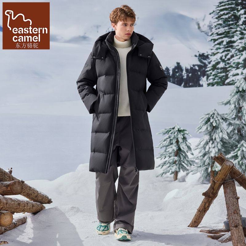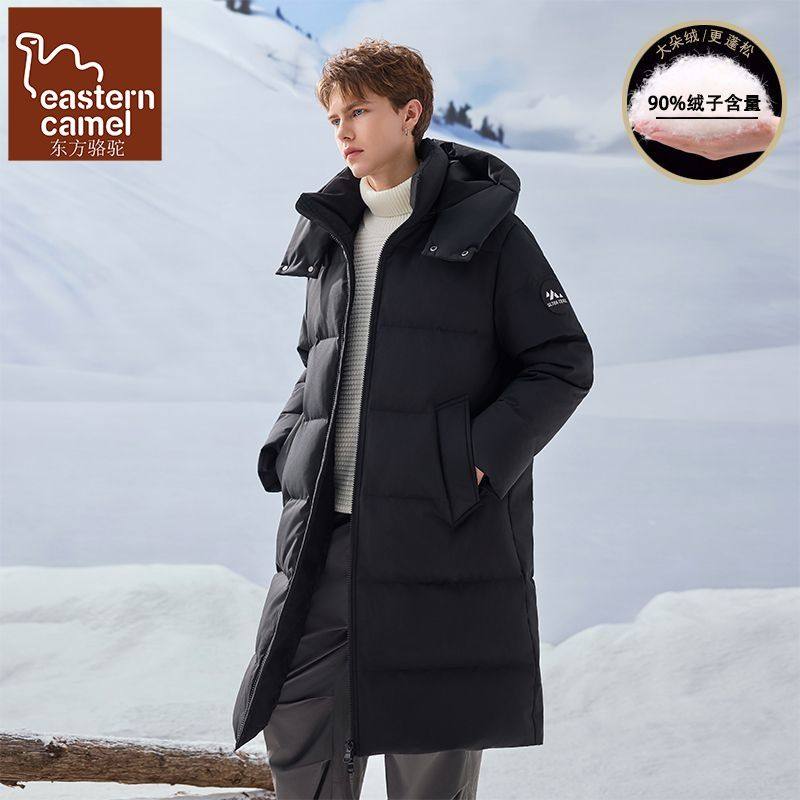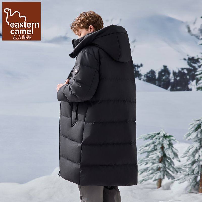 东方骆驼户外休闲连帽长款羽绒服男冬季加厚防寒保暖宽松鸭绒外套