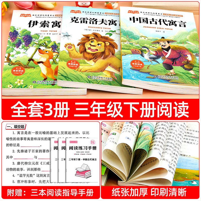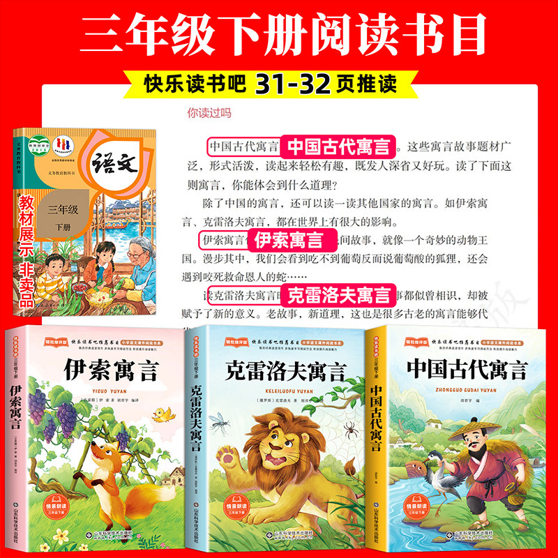 全套3册 中国古代寓言故事三年级下册课外书必读正版伊索克雷洛夫寓言大全集拉封丹快乐读书吧3下老师推荐阅读经典书籍配套人教版