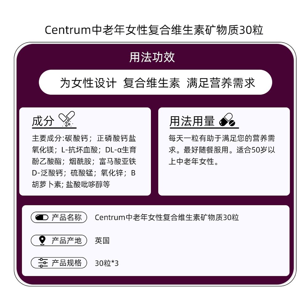 欧洲直邮英国药房Centrum善存维生素矿物质30粒*3中老年补充剂
