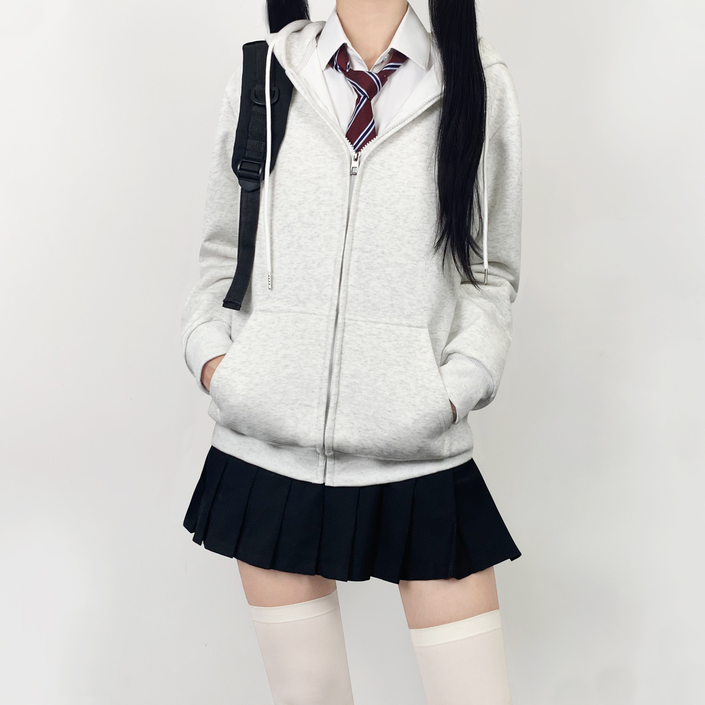 木村叔jk制服灰色连帽卫衣外套女秋冬季校供感女学生宽松休闲上衣