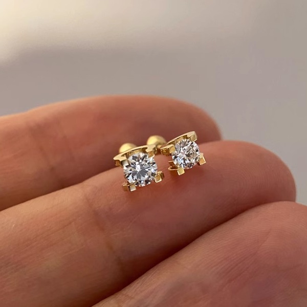 HETAO荷桃5分/20分/30分D色vs-vvs培育钻圆钻牛头18k金耳钉