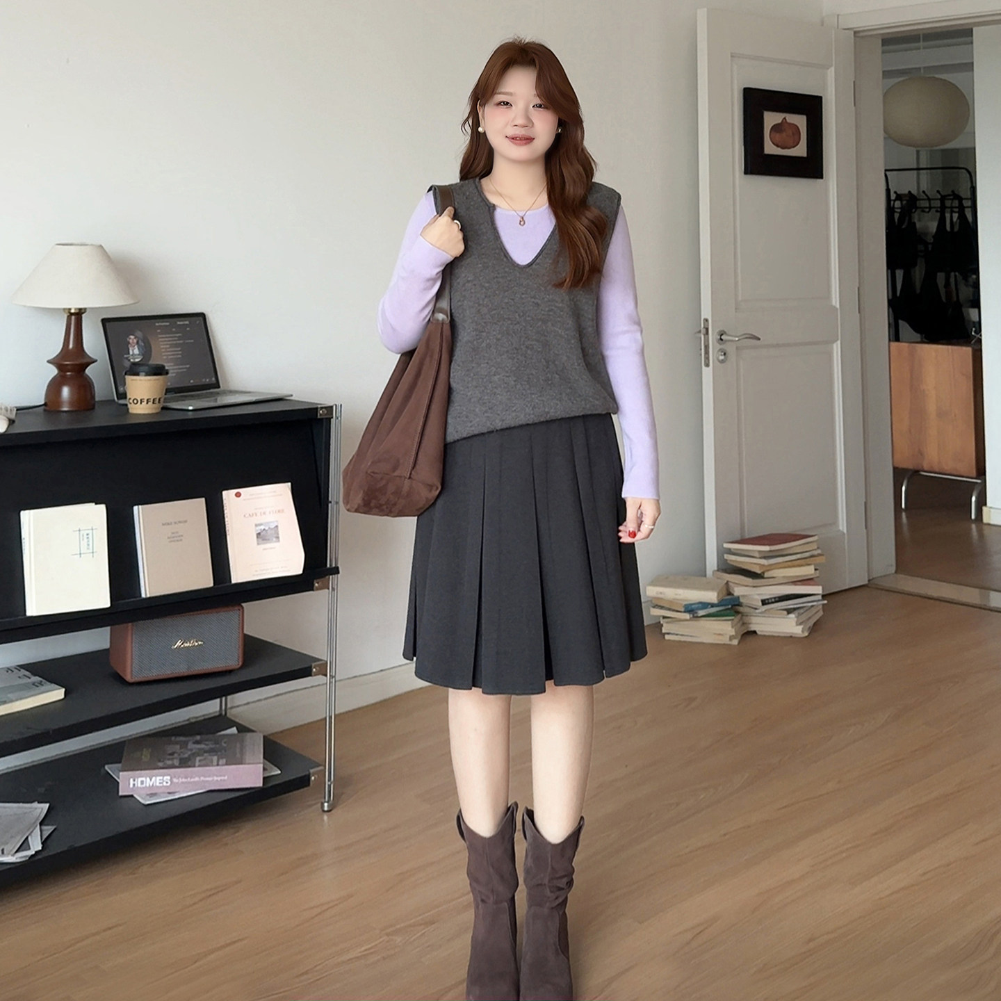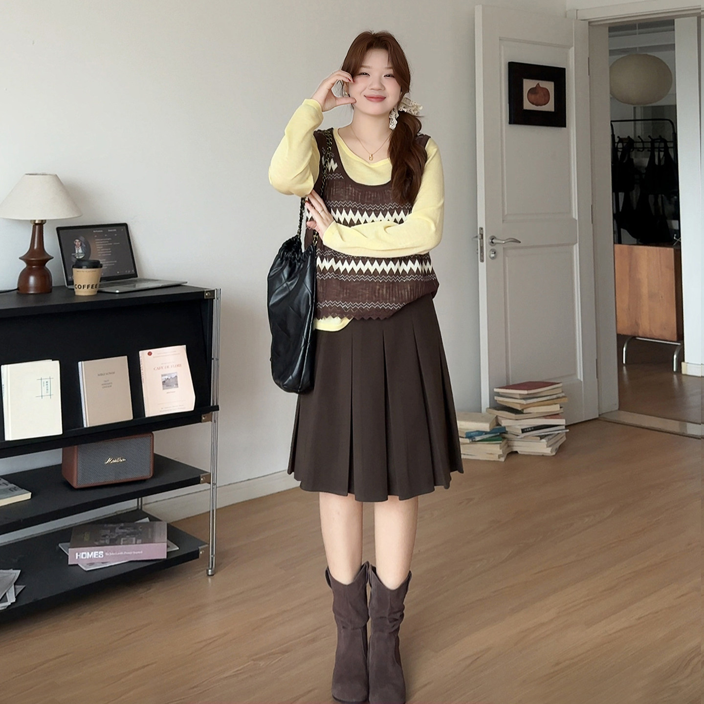 微胖mm高腰巨遮胯五分a字百褶裙