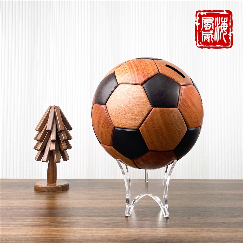 海风威榫卯实木足球存钱罐摆件欧洲E杯C罗梅西周边生日礼物送长辈