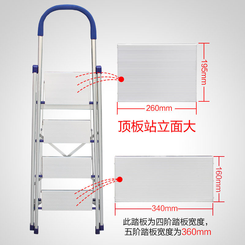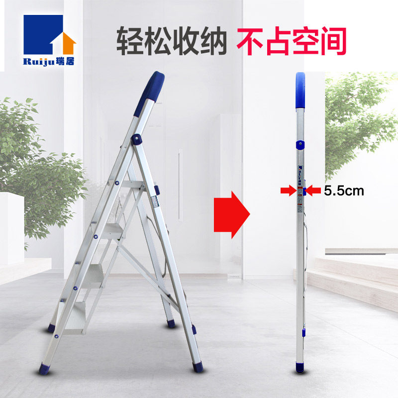 瑞居人字梯铝合金梯子家用梯子折叠加厚多功能室内爬梯四步全铝梯