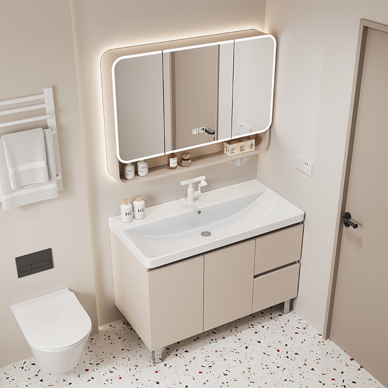 加厚蜂窝铝浴室柜组合加深一体陶瓷洗脸盆卫生间洗漱台落地洗手盆