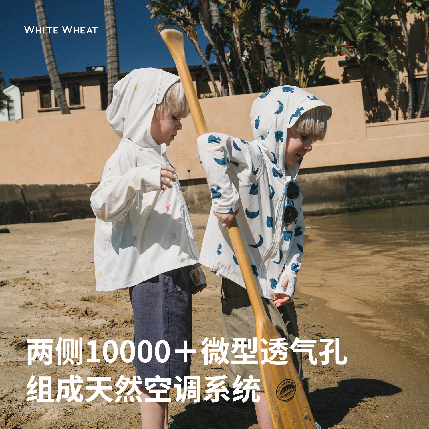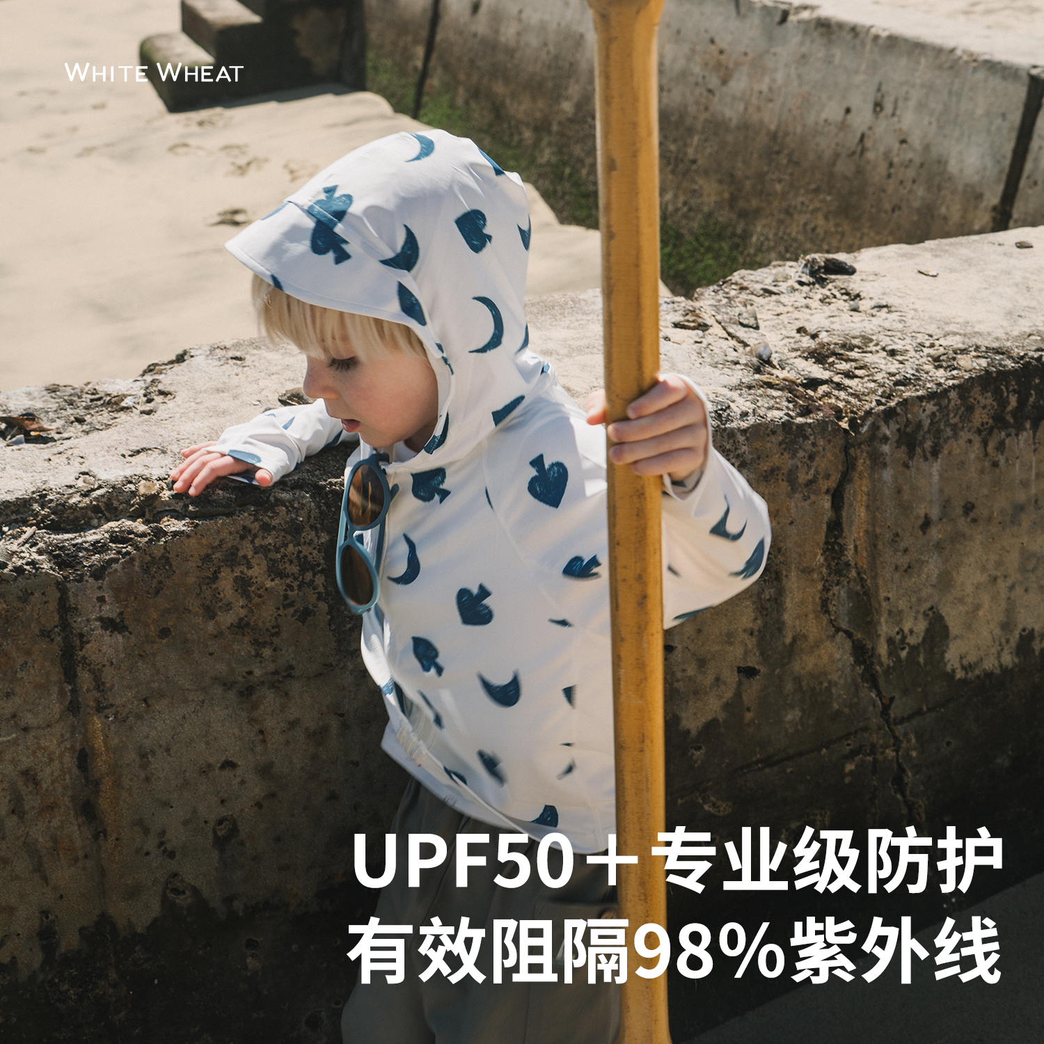 【UPF50+】whitewheat儿童2025夏季新款外套女男童印花原纱防晒衣
