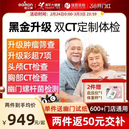 美年大健康体检套餐体检卡高端黑金头胸部双CT瑞慈父母中老年男女