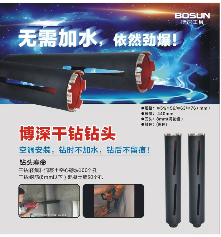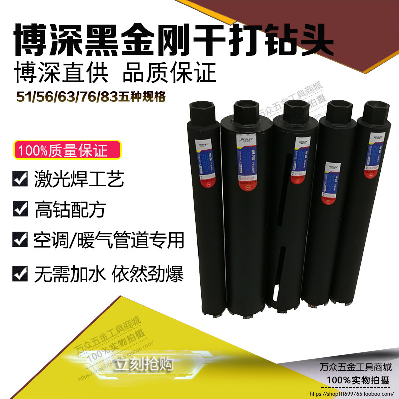 博深工具原厂正品黑金刚空调干打水钻头63混凝土墙壁开孔器不加水
