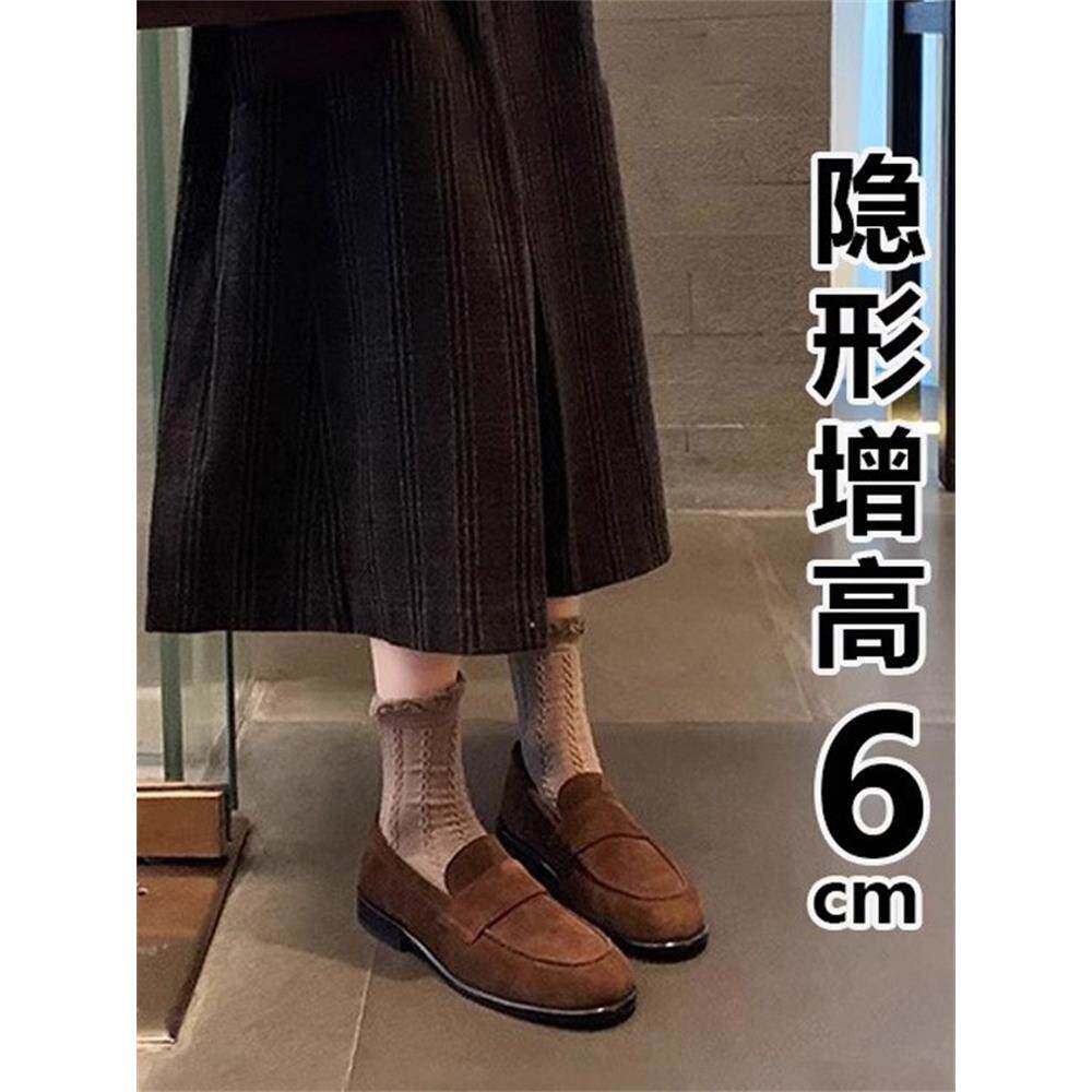 英伦风覆古内增高乐福鞋女春秋季新款小个子厚底真皮一脚蹬小皮鞋