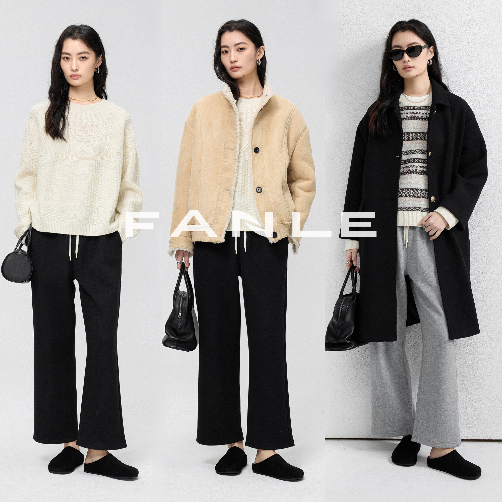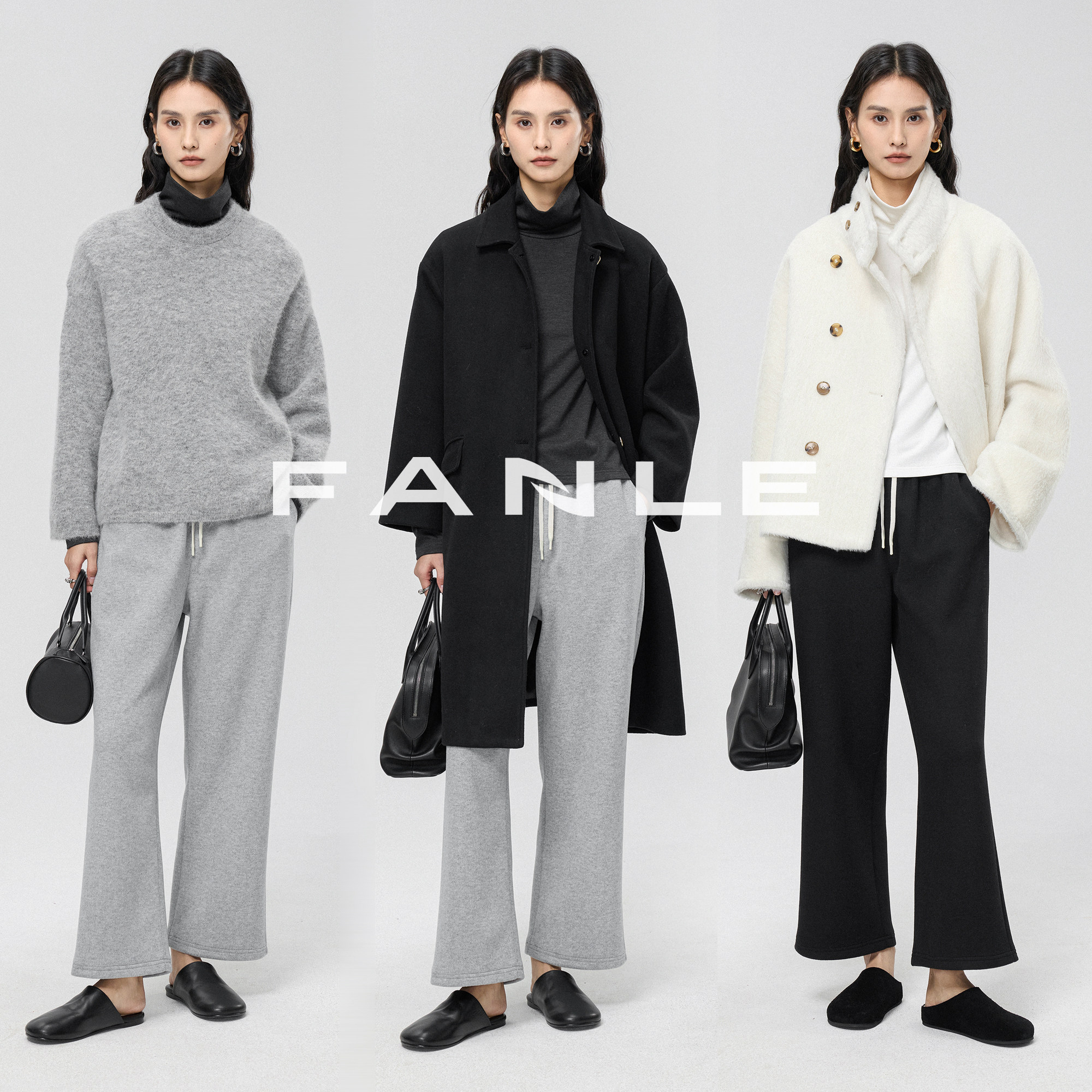 FANLE STUDIOS新型加厚醋酸羊毛绒感轻柔保暖牛筋腰9分羊毛裤卫裤