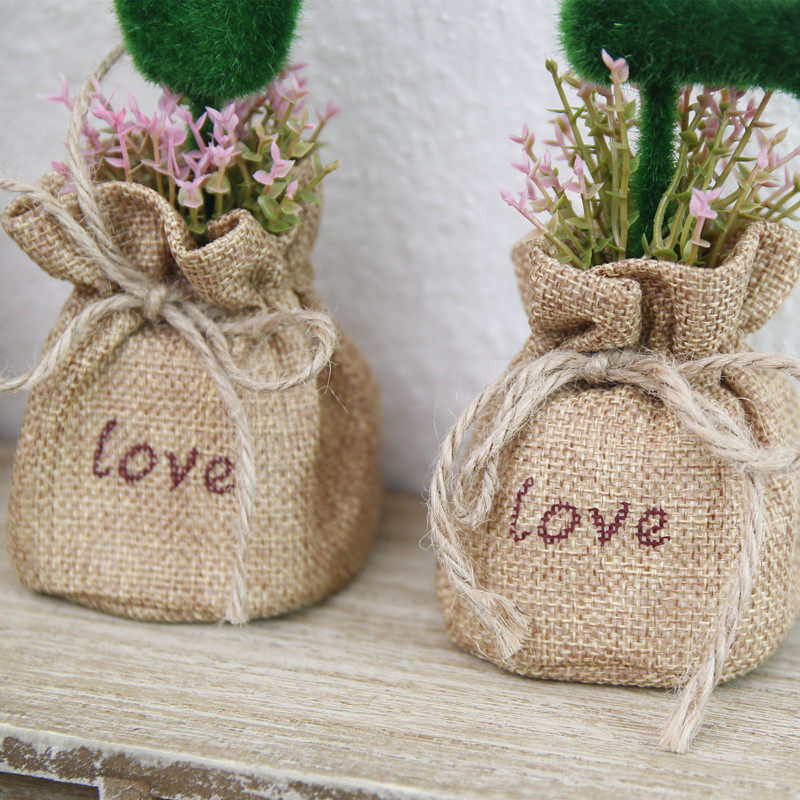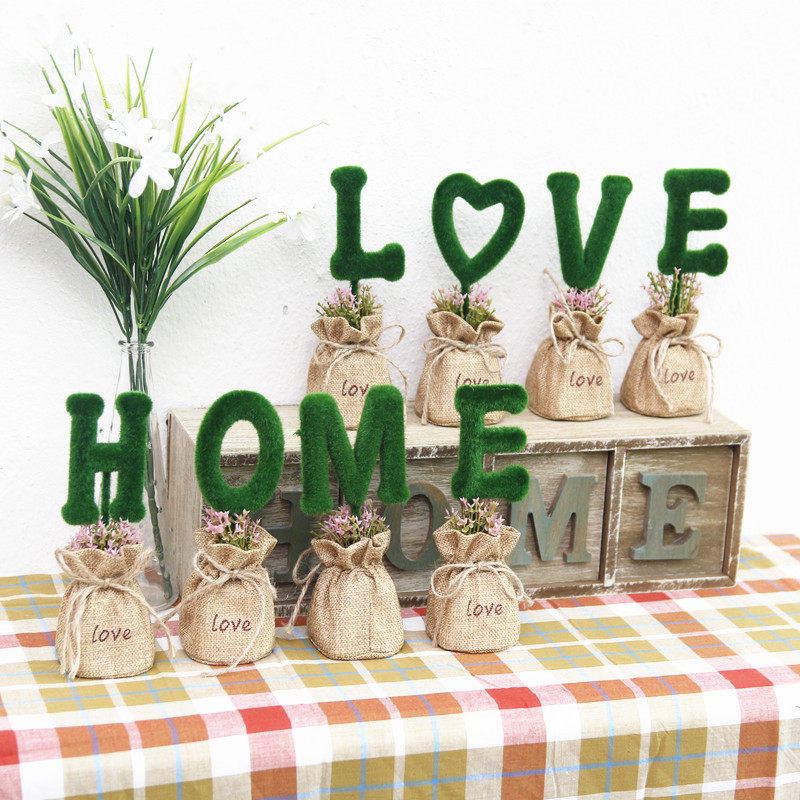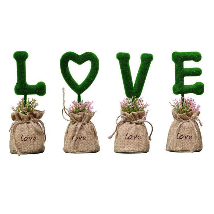 LOVE仿真布袋植物盆栽家居饰品套装摆件 店铺办公室桌面窗台盆景