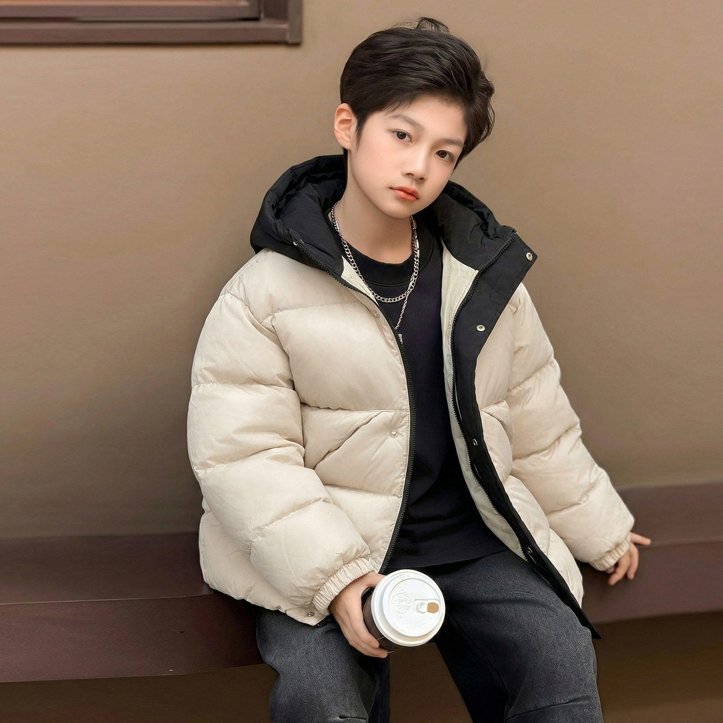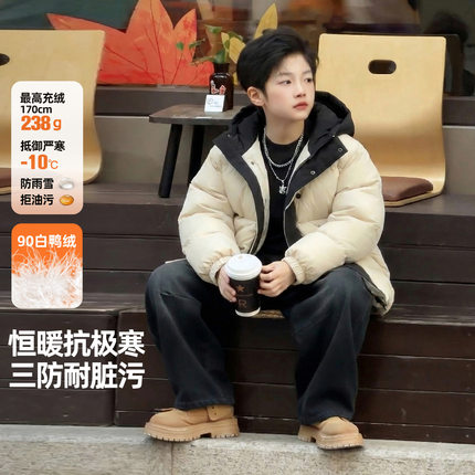 2025冬新国标90白鸭绒黑金自发热儿童三防羽绒服高充绒男女童外套