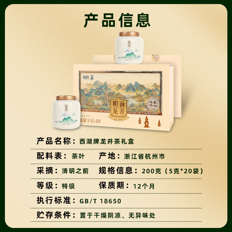 西湖牌明前特级龙井茶叶礼盒装高档绿茶高档送人礼品绿茶茶叶礼盒