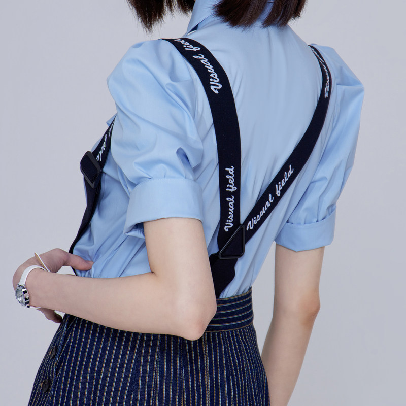 OBEG欧碧倩全棉条纹压褶半身裙秋冬气质通勤背带A字伞裙10443022