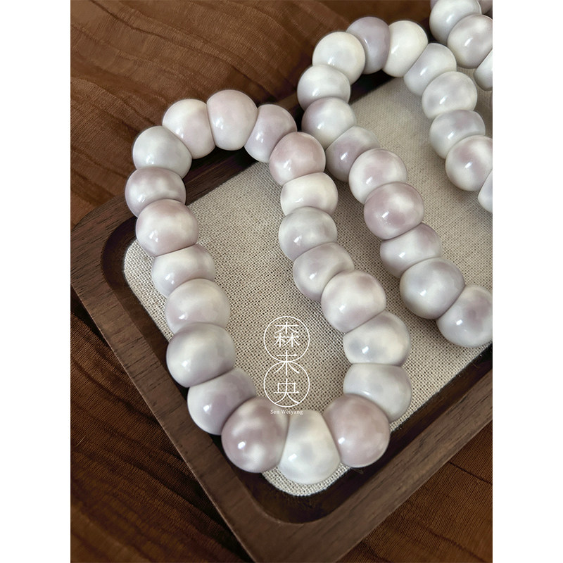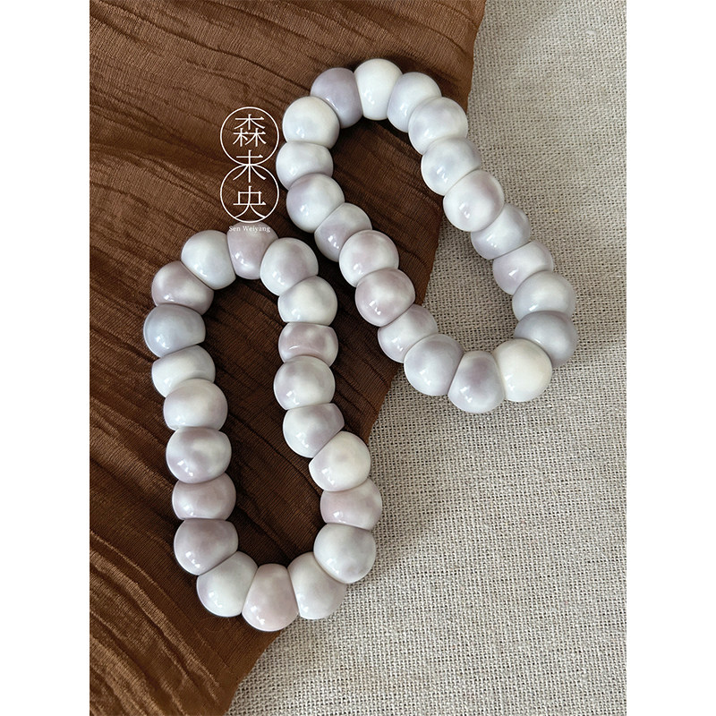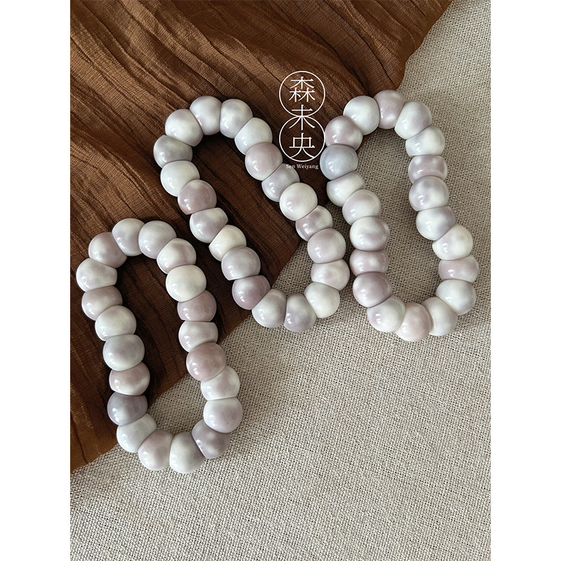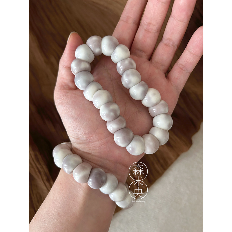 森未央「芋泥山竹」14mm芋泥飘花灰紫飘花蒜瓣大肠菩提根手串