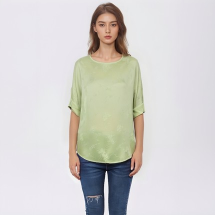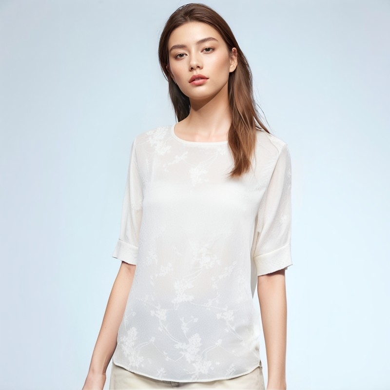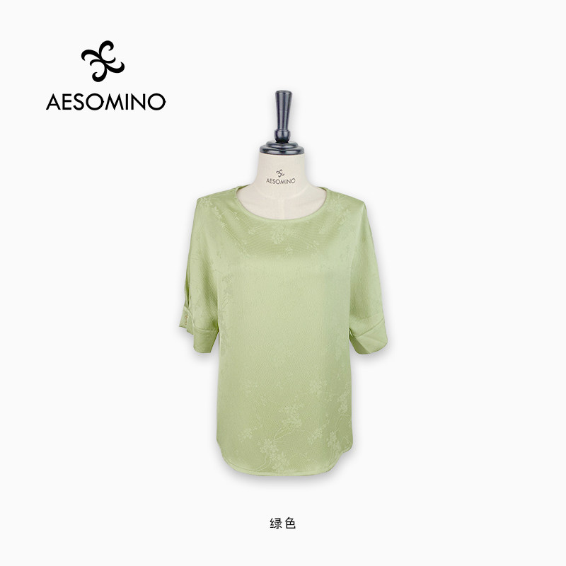 夏季新中式暗纹提花雪纺衫短袖女百搭圆领国风T恤上衣Y337B8595