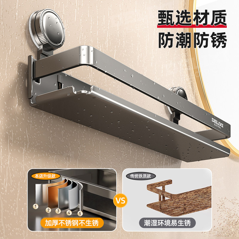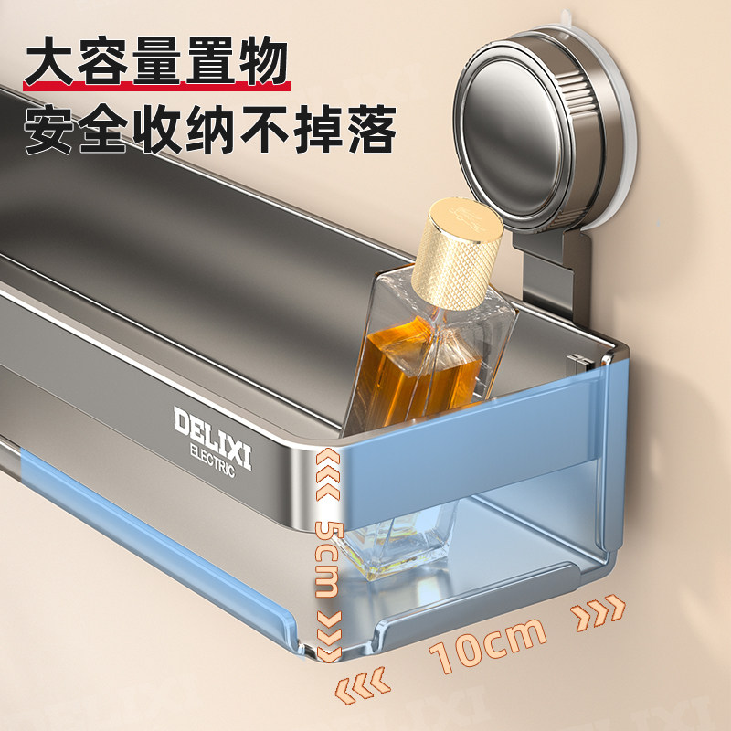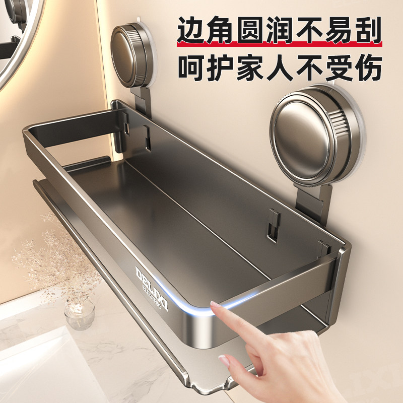 德力西吸盘不锈钢浴室置物架卫生间收纳架免打孔洗漱台厕所壁挂式