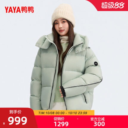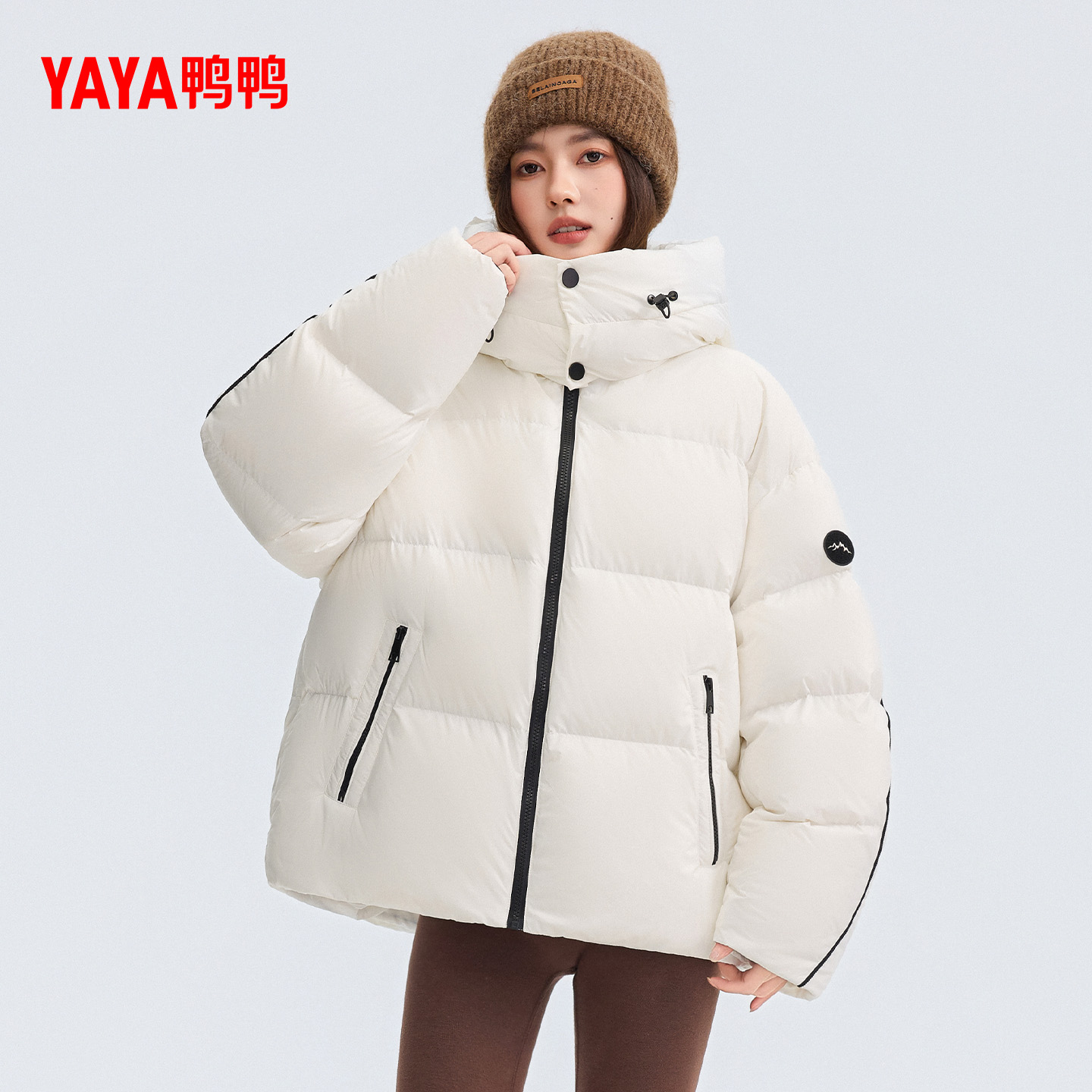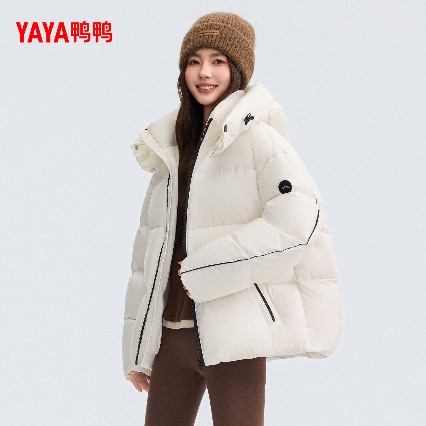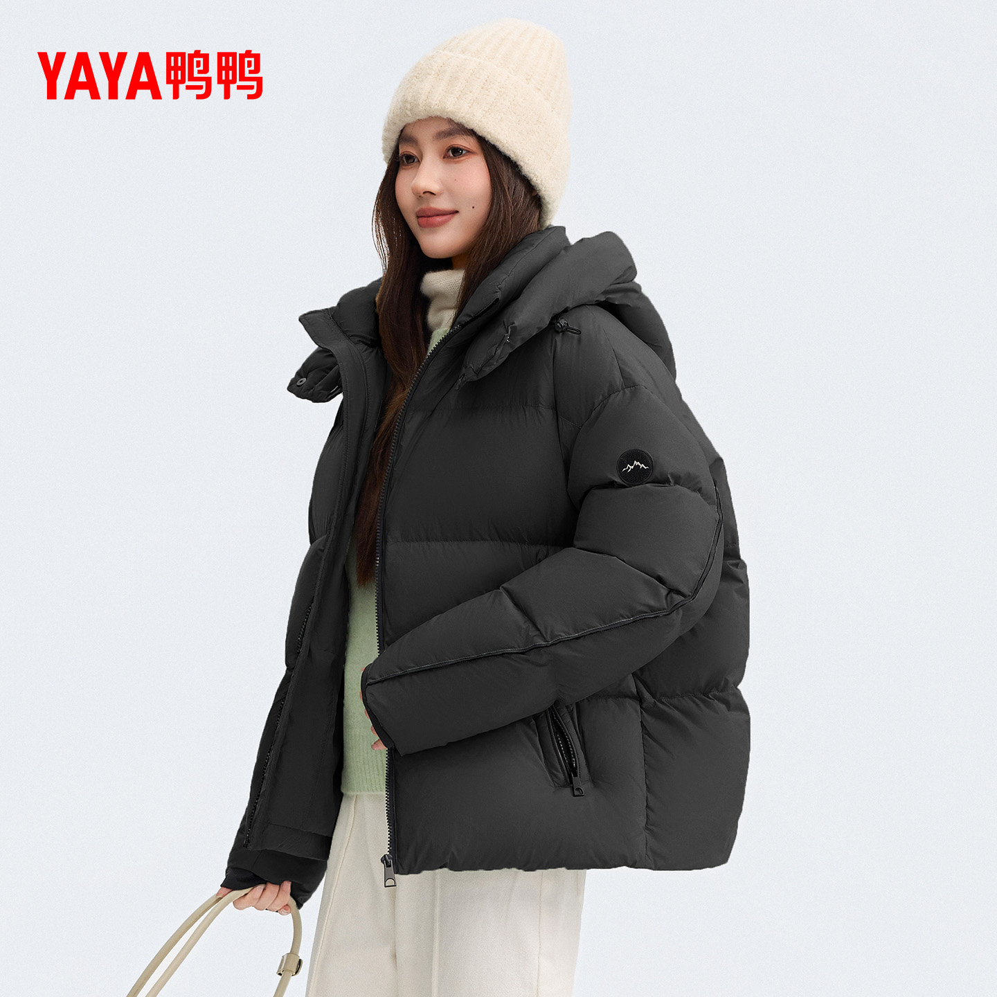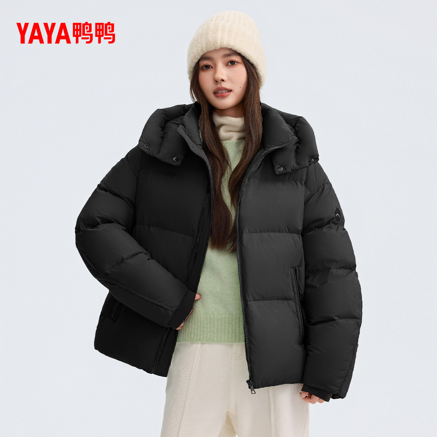 鸭鸭羽绒服女2025年冬季新款短款时尚简约百搭休闲鹅绒连帽外套M