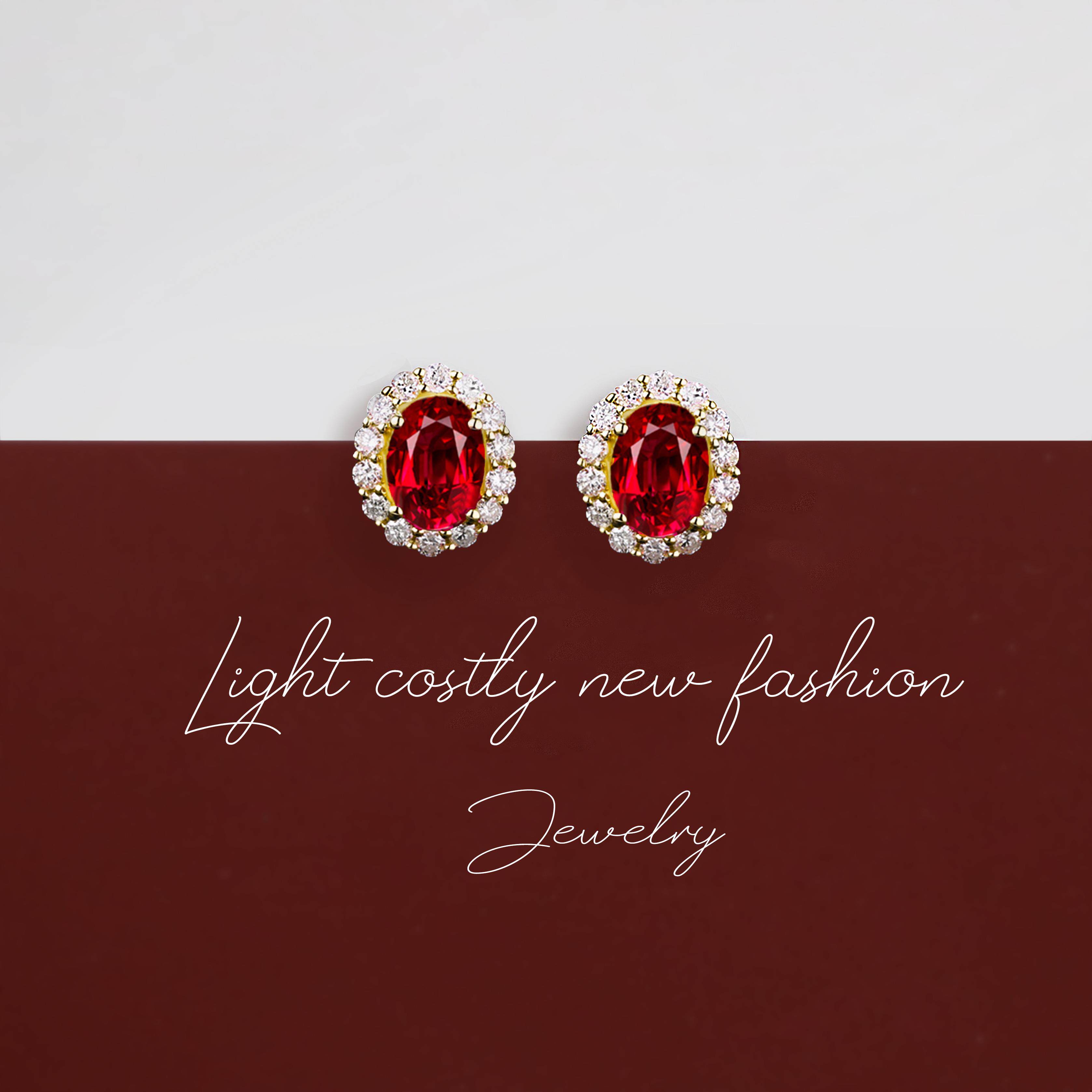 缅甸天然鸽血红宝石耳钉 18K金镶嵌钻石耳环纯银甜美彩宝银饰耳饰