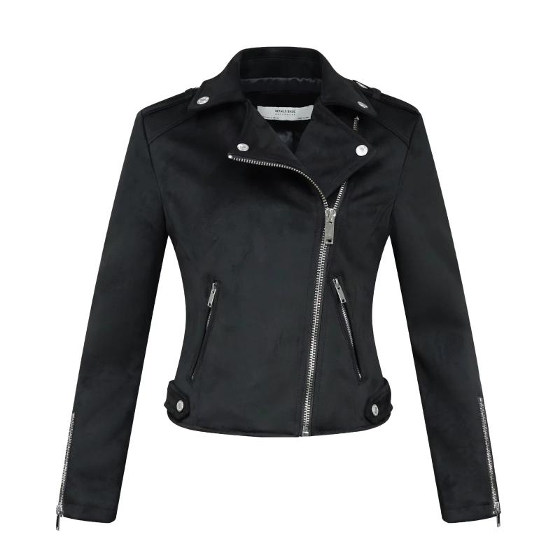 秋冬新款短款长袖麂皮绒外套仿鹿皮绒高腰修身拉链机车夹克潮上衣